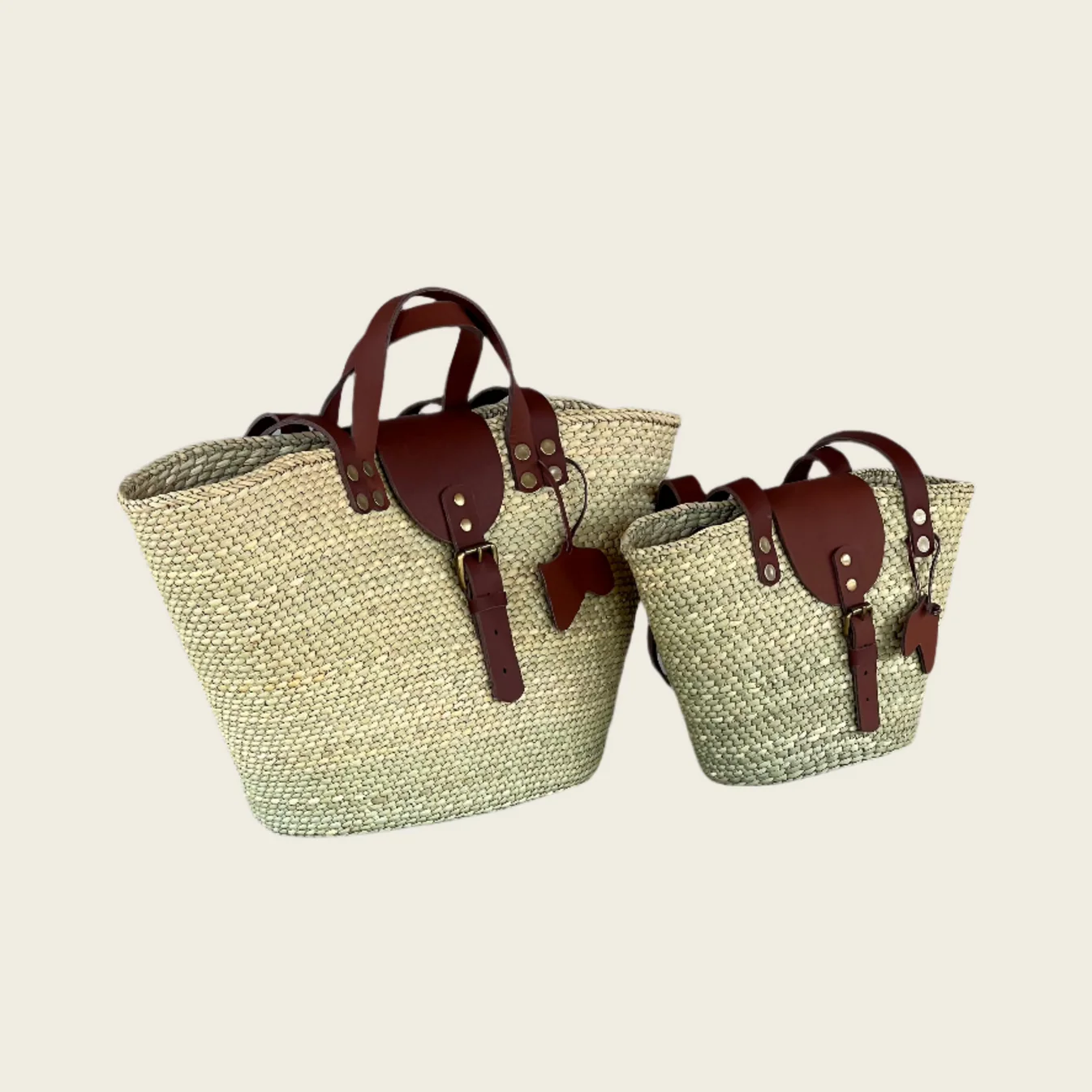 Çantalar, %100 kurutulmuş “Milulu” saz otu kullanılarak özenle örülür.